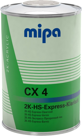 Mipa 2K-HS-Express-Klarlack CX 4 ist ein qualitativ hochwertiger Acryl-Klarlack zur schnellen und rationellen Reparaturlackierung (Express-Technologie), der sowohl bei Ofentrocknung als auch bei Lufttrocknung extrem schnelle Trockenzeiten gewährleistet.
